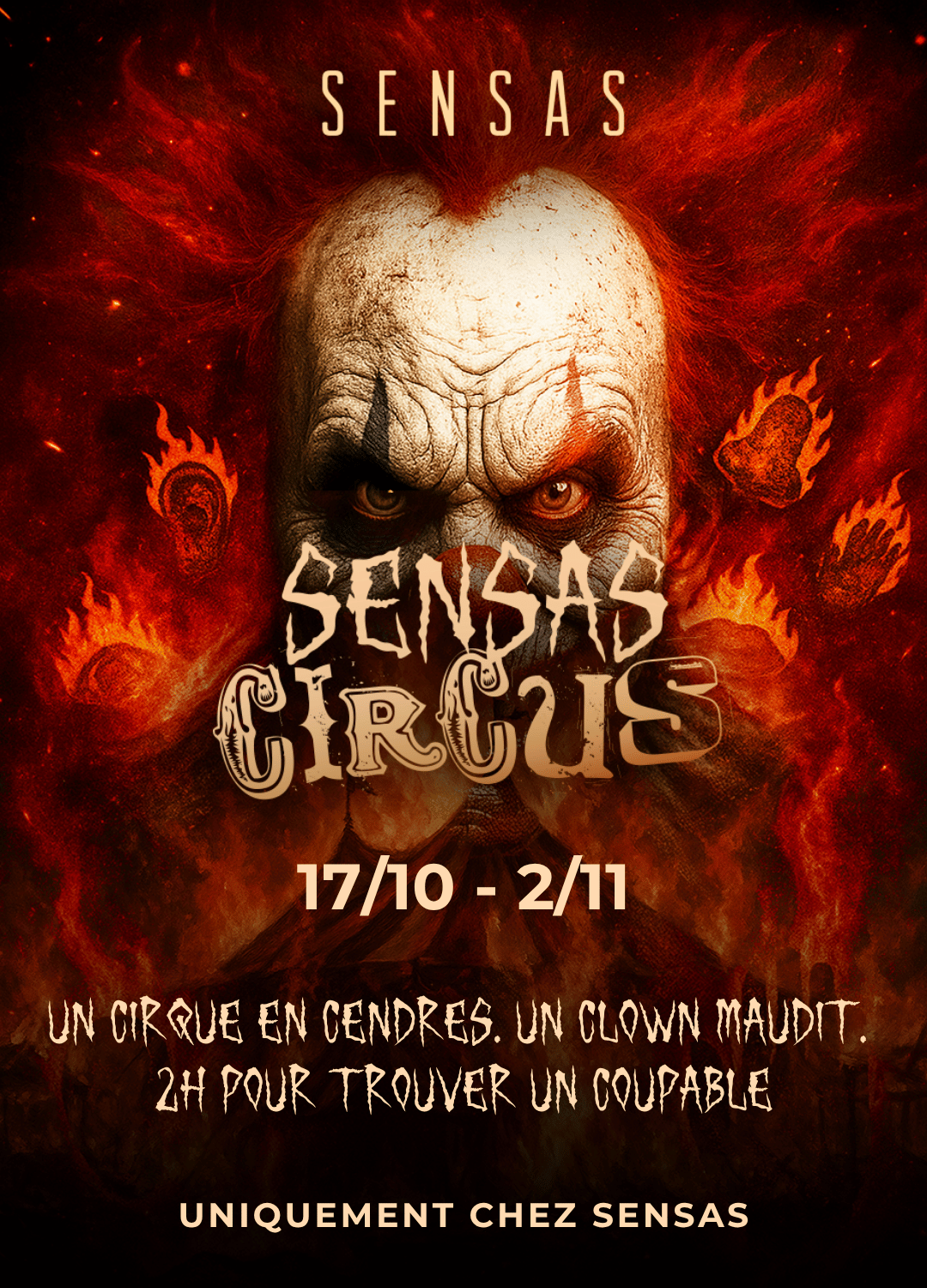 Du 17 octobre au 1er novembre 2025, le centre SENSAS se transforme en un cirque maudit pour vous plonger dans une enquête grandeur nature.